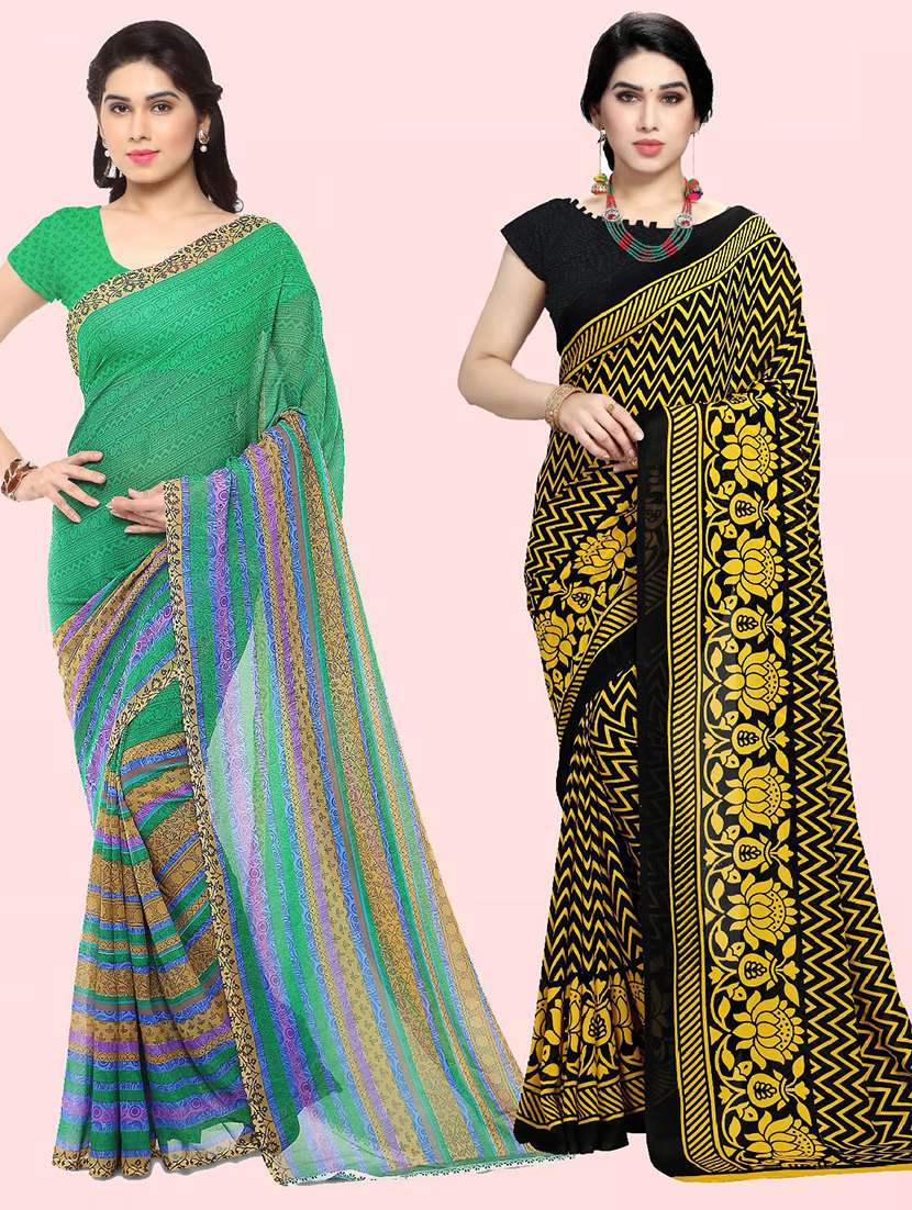 women pack of 2 casual wear combo sarees with blouse