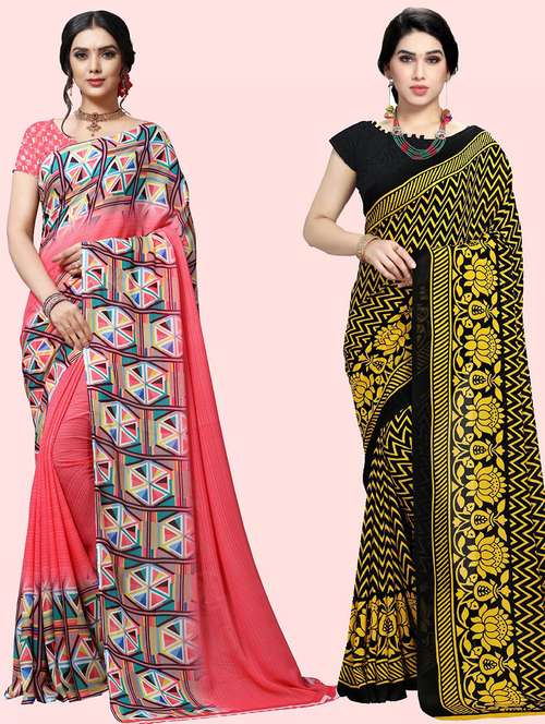 women pack of 2 casual wear combo sarees with blouse - 21410750 - Very Small Image - 1