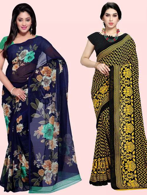 women pack of 2 casual wear combo sarees with blouse - 21410752 - Very Small Image - 1