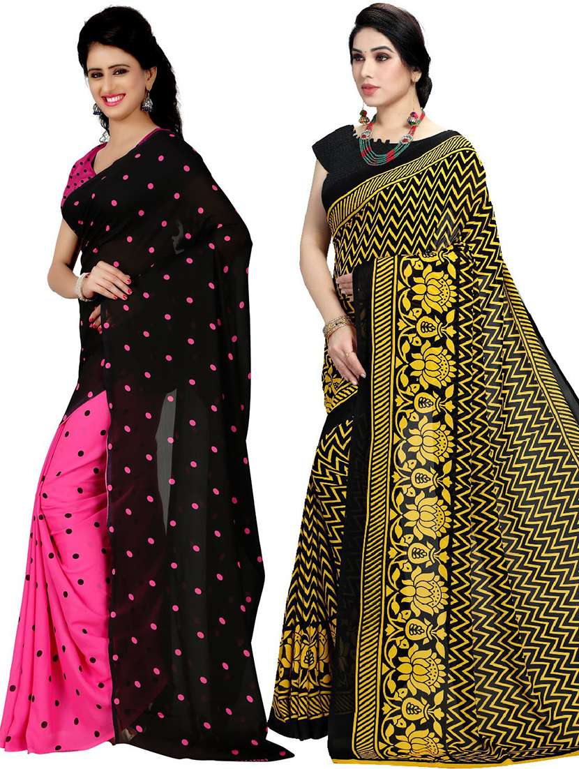women pack of 2 casual wear combo sarees with blouse - 21410873 - Very Small Image - 1