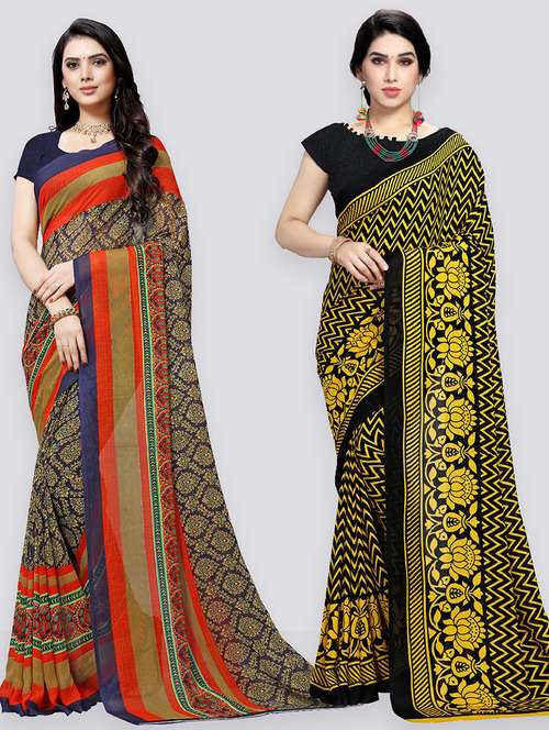 women pack of 2 casual wear combo sarees with blouse - 21410882 - Very Small Image - 1