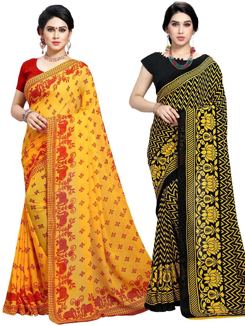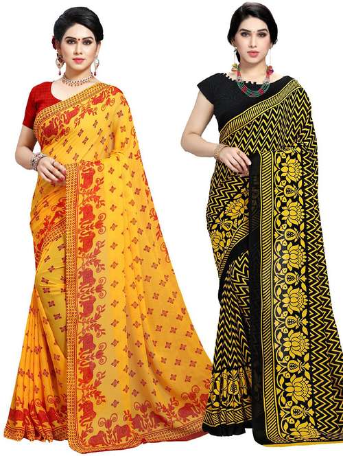 women pack of 2 casual wear combo sarees with blouse