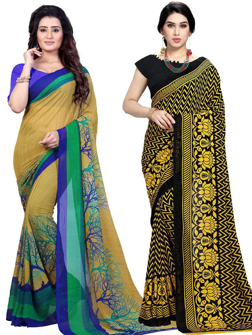 women pack of 2 casual wear combo sarees with blouse