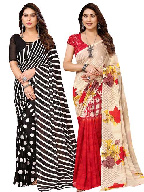 pack of 2 printed casual wear sarees with blouse - 21411843 - Very Small Image - 1