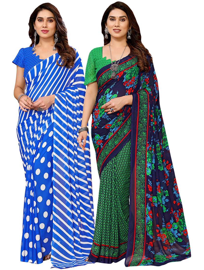 pack of 2 printed casual wear sarees with blouse - 21411849 - Very Small Image - 1