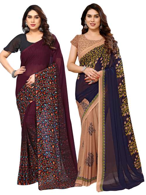 pack of 2 printed casual wear sarees with blouse - 21411854 - Very Small Image - 1