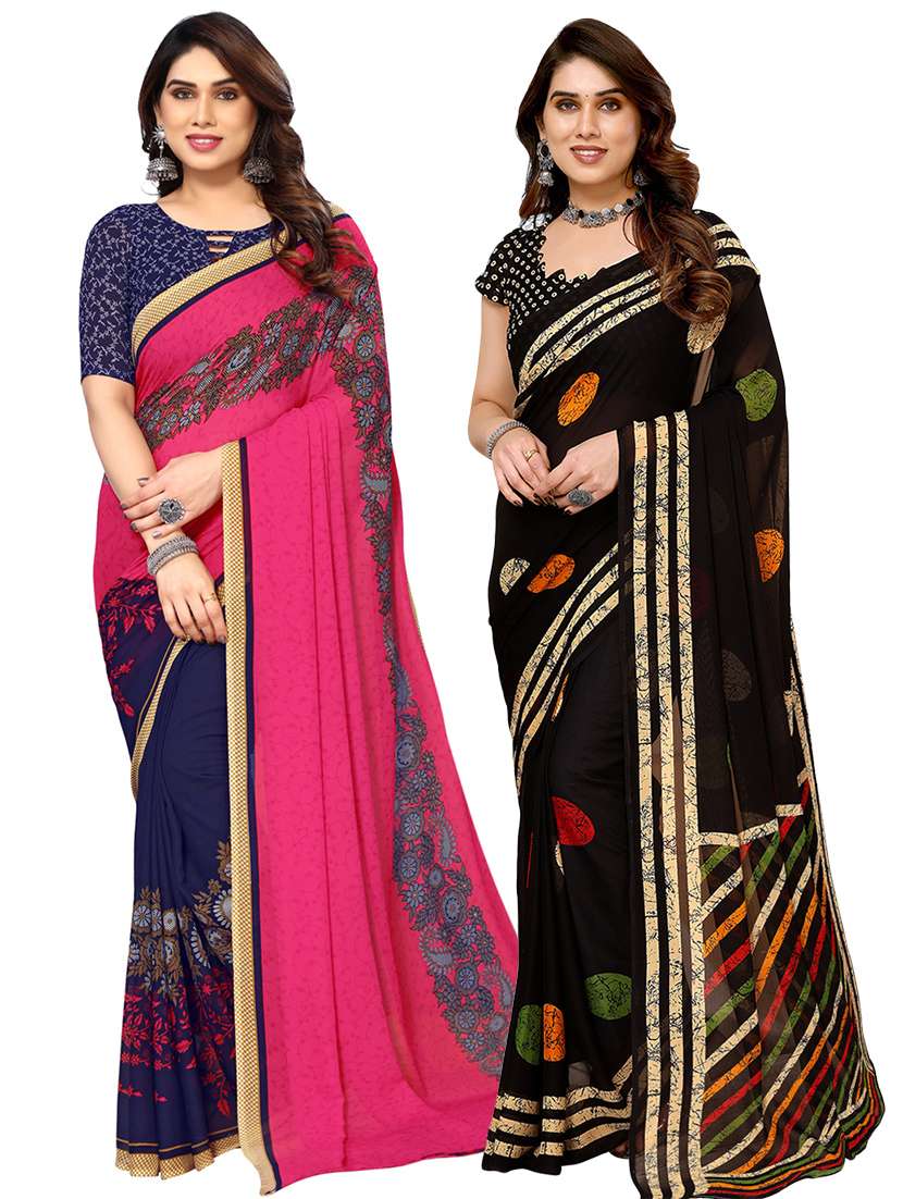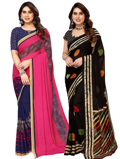pack of 2 printed casual wear sarees with blouse - 21411858 - Very Small Image - 1