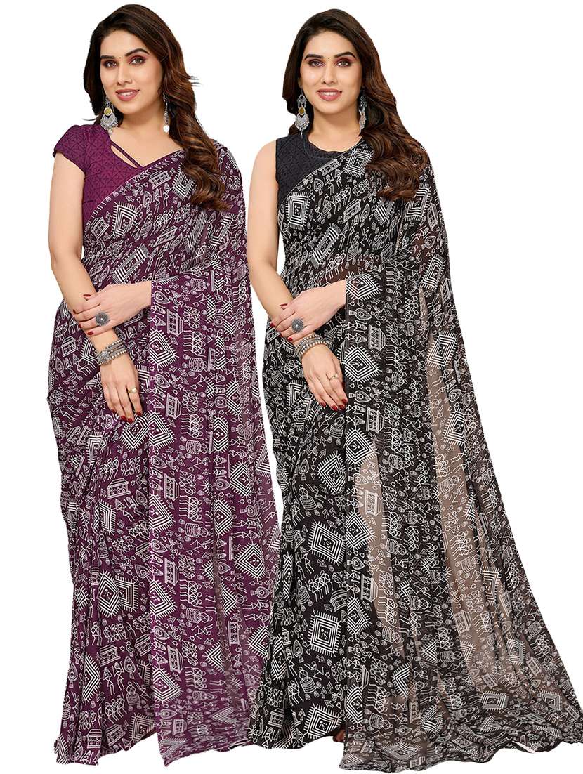 pack of 2 printed casual wear sarees with blouse