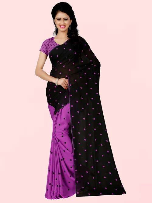 women purple polka dots printed saree with blouse