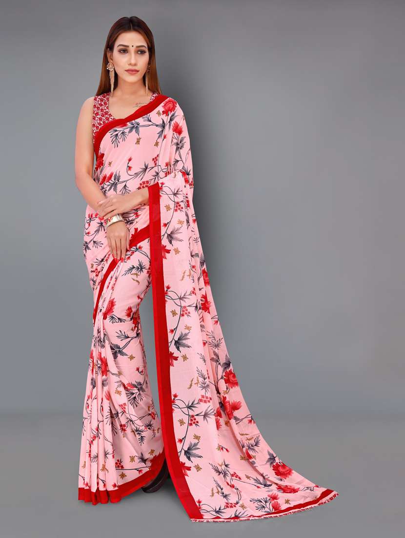 - » women pink floral printed saree with blouse