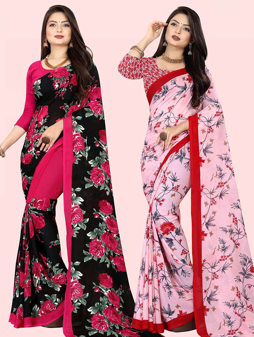 pack of 2 casual wear printed sarees with blouse