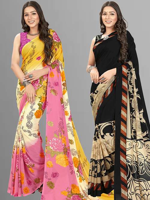 pack of 2 casual wear combo sarees with blouse
