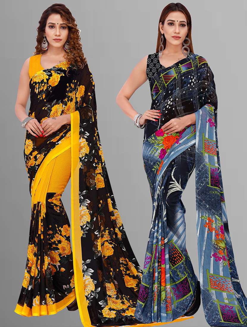 women pack of 2 casual wear combo sarees with blouse
