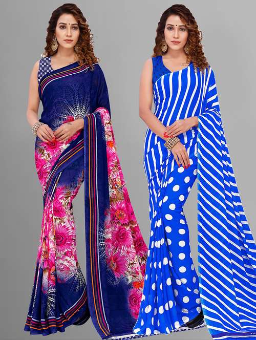 women pack of 2 casual wear combo sarees with blouse - 21414338 - Very Small Image - 1