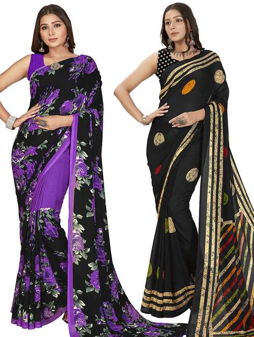 women pack of 2 casual wear combo sarees with blouse - 21414392 - Very Small Image - 1