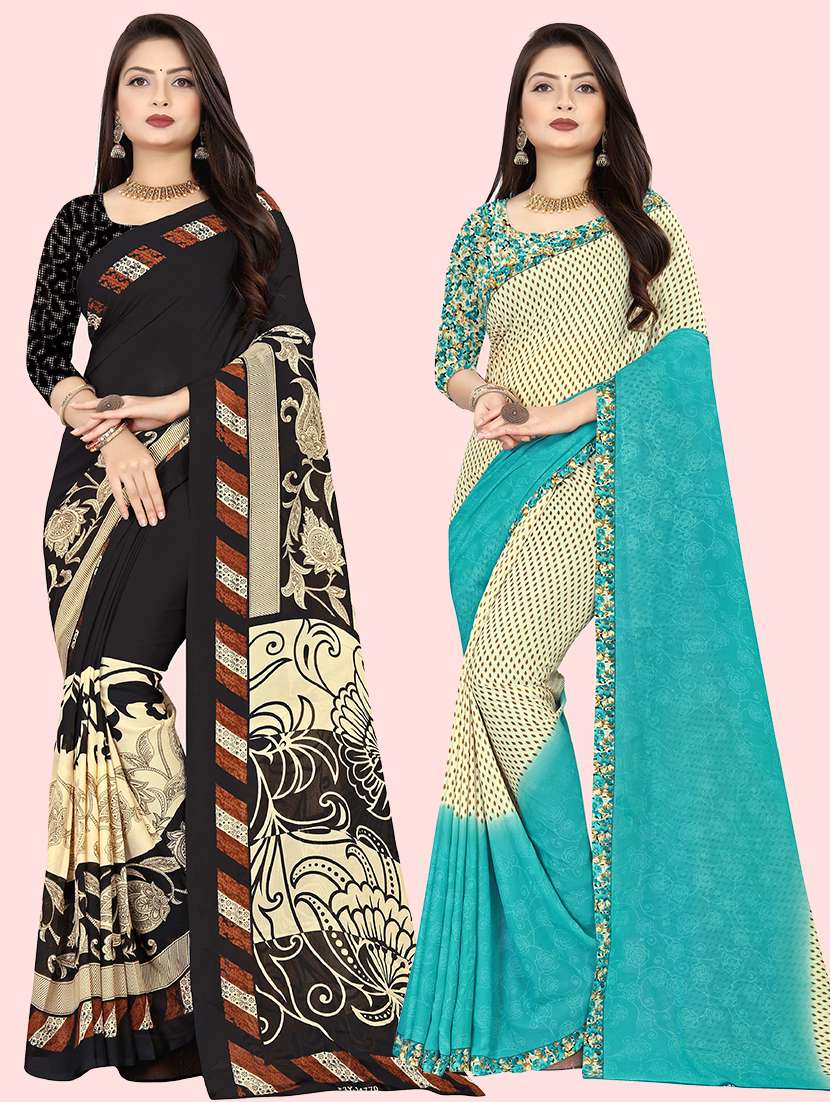women pack of 2 casual wear combo sarees with blouse - 21414397 - Very Small Image - 1