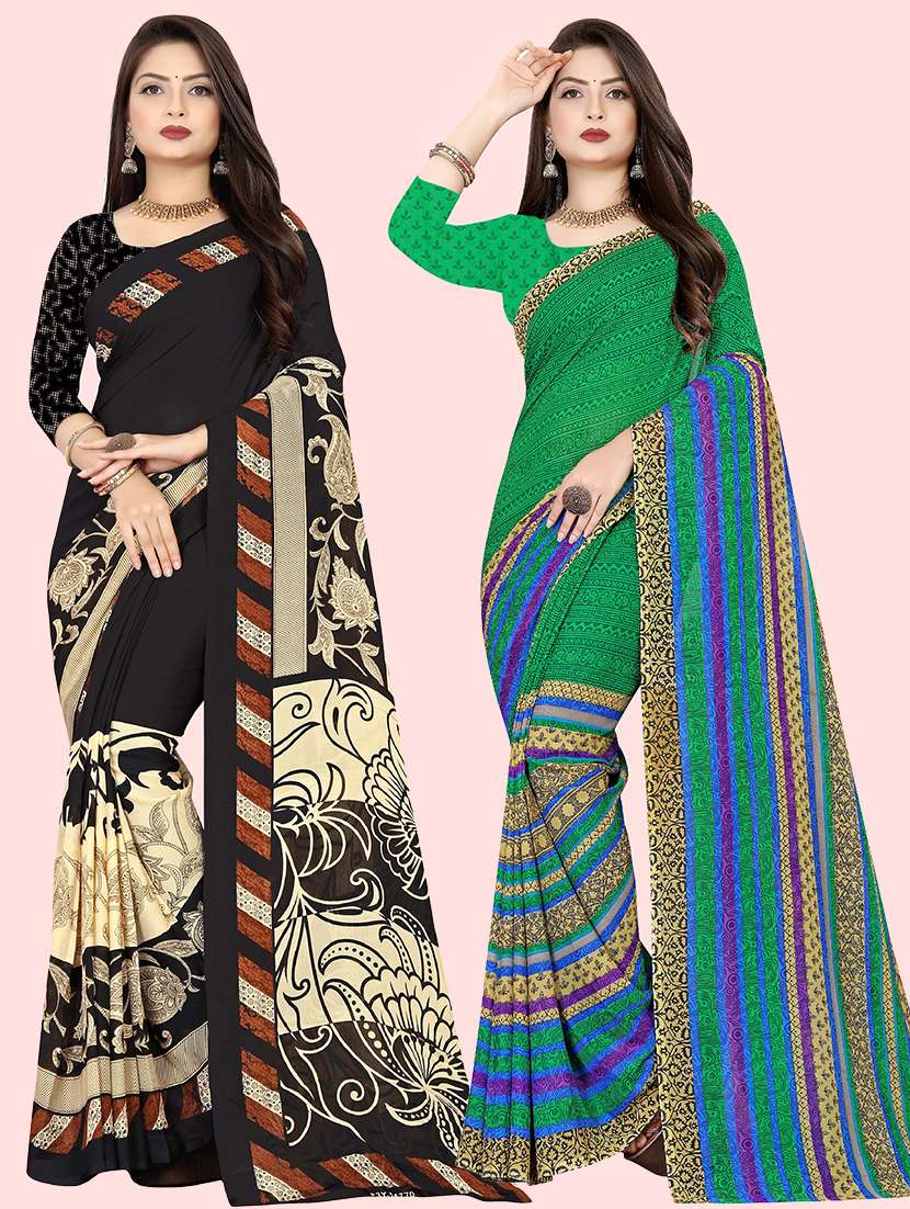women pack of 2 casual wear combo sarees with blouse