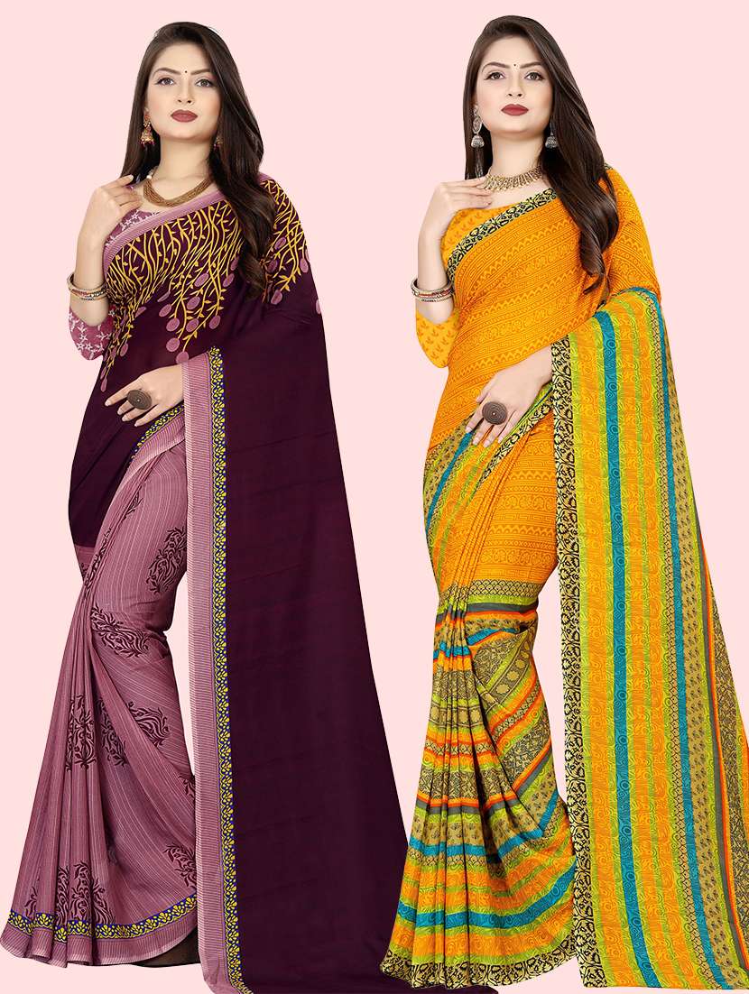 women pack of 2 casual wear combo sarees with blouse - 21414453 - Very Small Image - 1