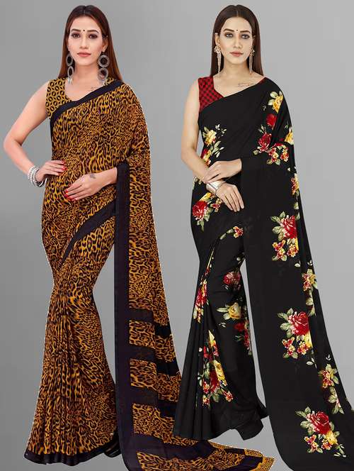 women pack of 2 casual wear combo sarees with blouse - 21414464 - Very Small Image - 1