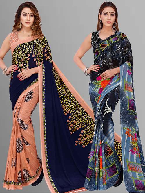 women pack of 2 casual wear combo sarees with blouse