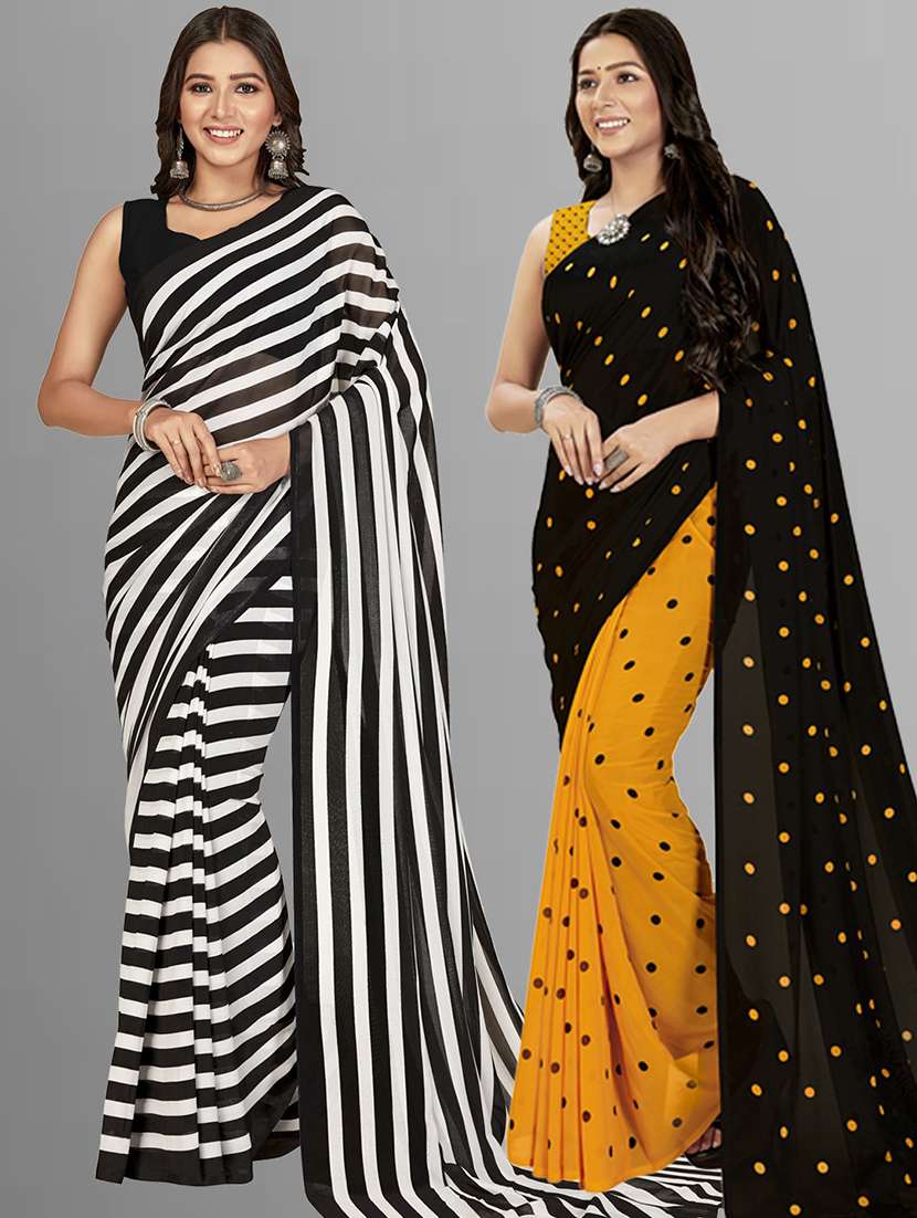 women pack of 2 casual wear combo sarees with blouse - 21414479 - Very Small Image - 1