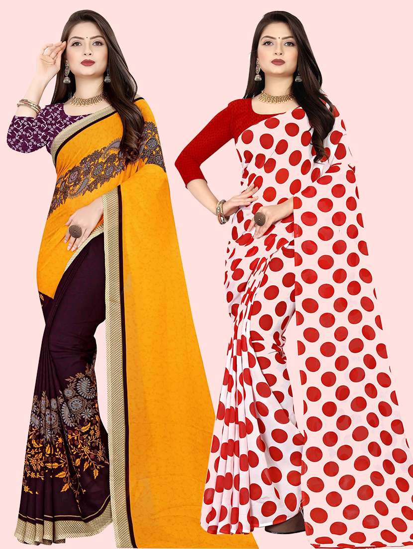 pack of 2 casual wear combo sarees with blouse