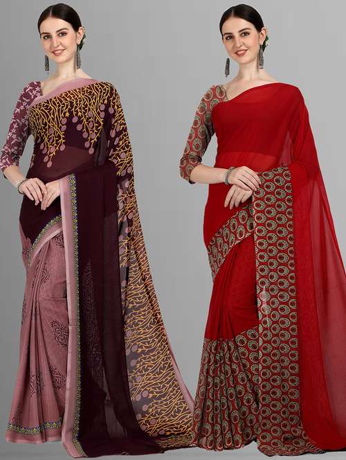 women pack of 2 casual wear combo sarees with blouse