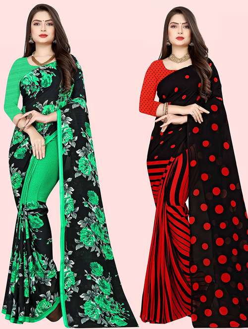 women pack of 2 casual wear combo sarees with blouse