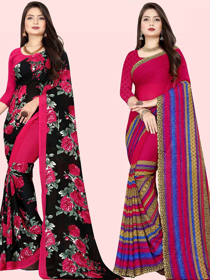 women pack of 2 casual wear combo sarees with blouse