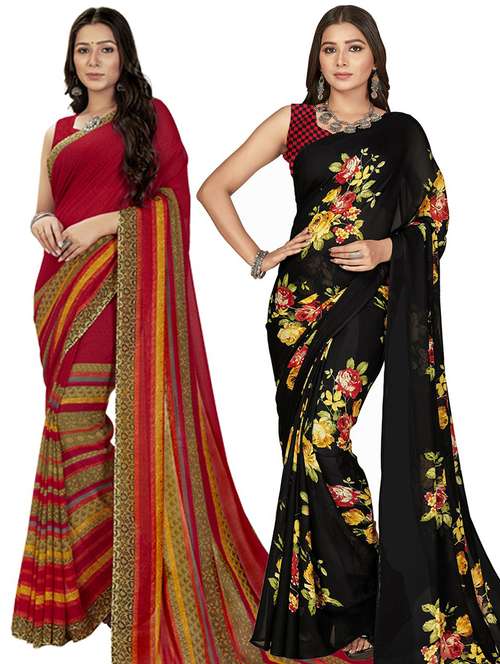 women pack of 2 casual wear combo sarees with blouse - 21414561 - Very Small Image - 1