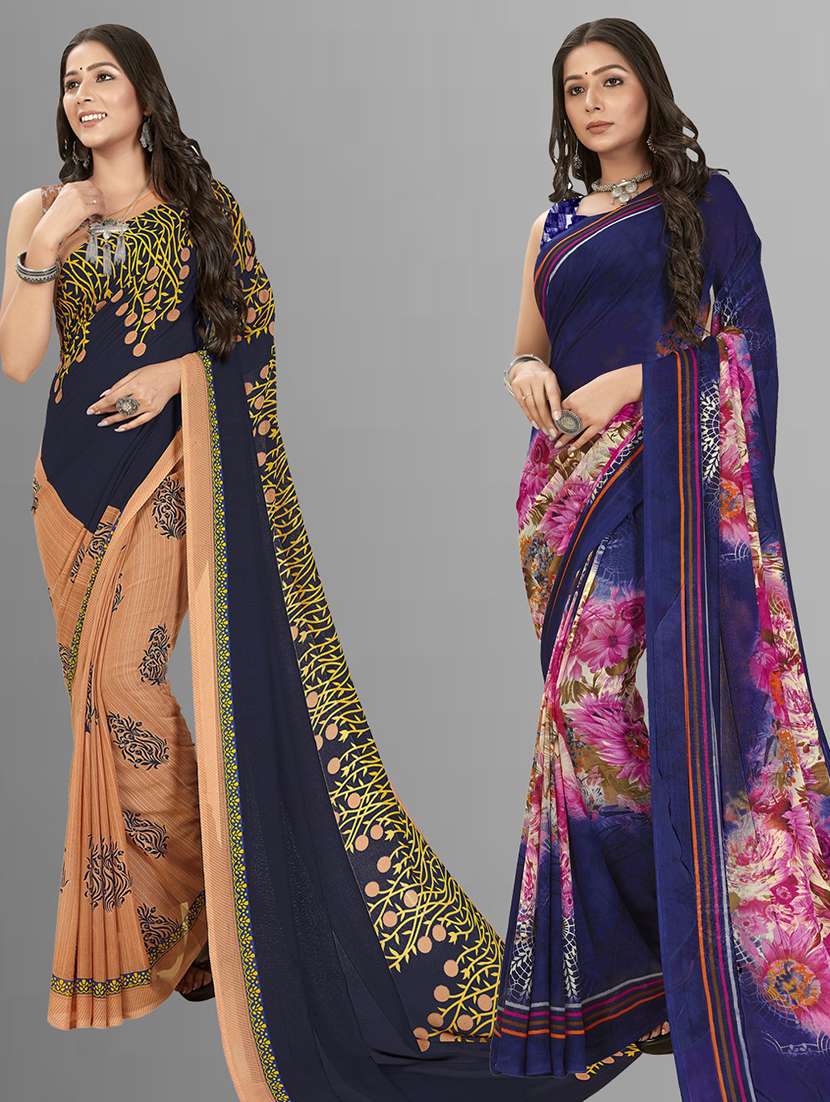 women pack of 2 casual wear combo sarees with blouse