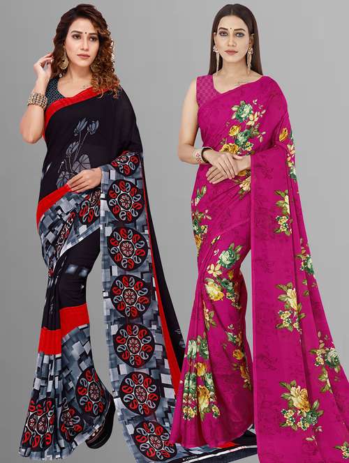 women pack of 2 casual wear combo sarees with blouse