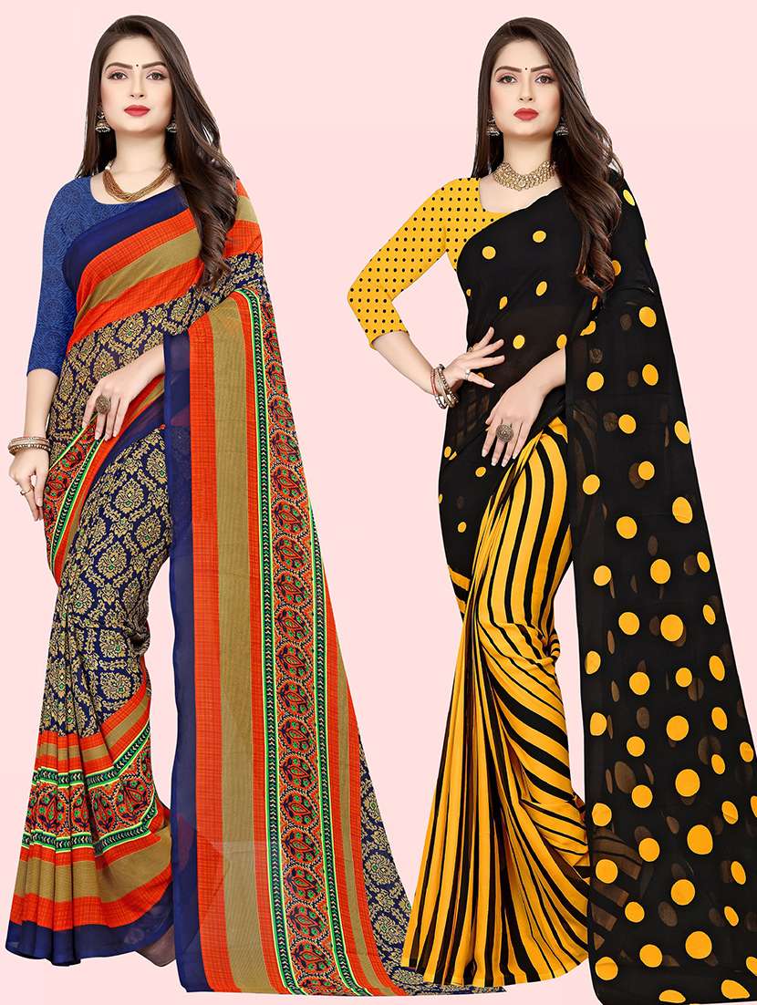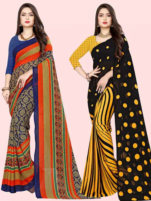 women pack of 2 casual wear combo sarees with blouse - 21414640 - Very Small Image - 1
