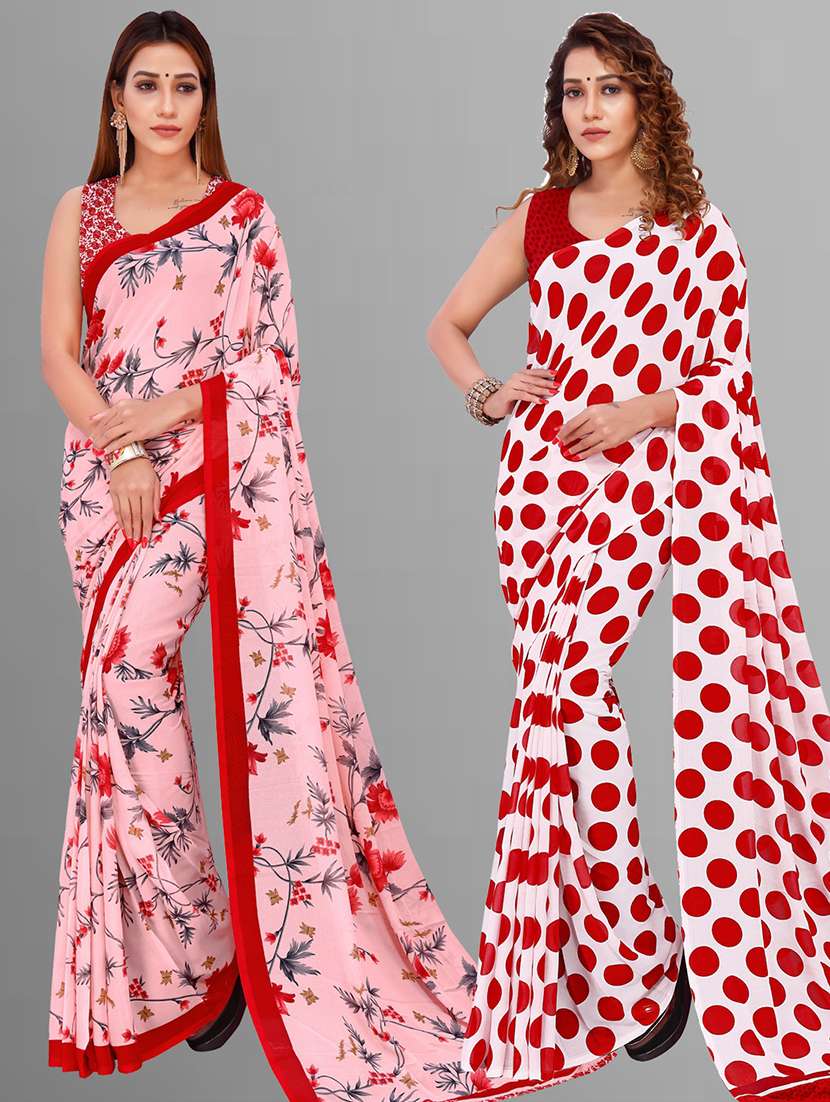 women pack of 2 casual wear combo sarees with blouse