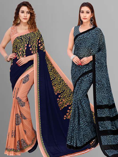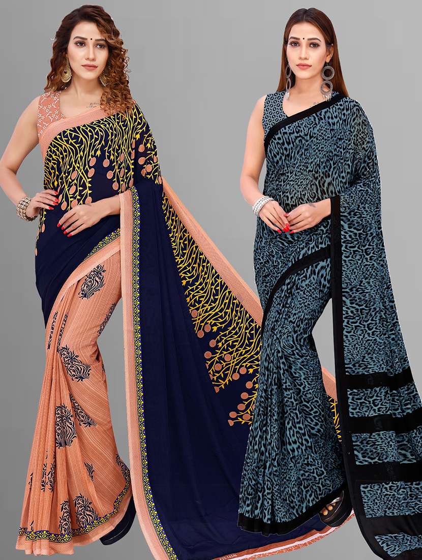 women pack of 2 casual wear combo sarees with blouse