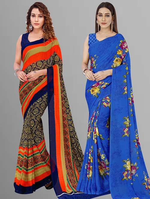 women pack of 2 casual wear combo sarees with blouse - 21414658 - Very Small Image - 1