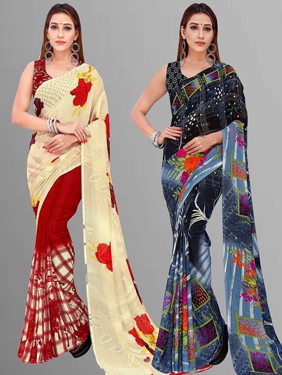 women pack of 2 casual wear combo sarees with blouse