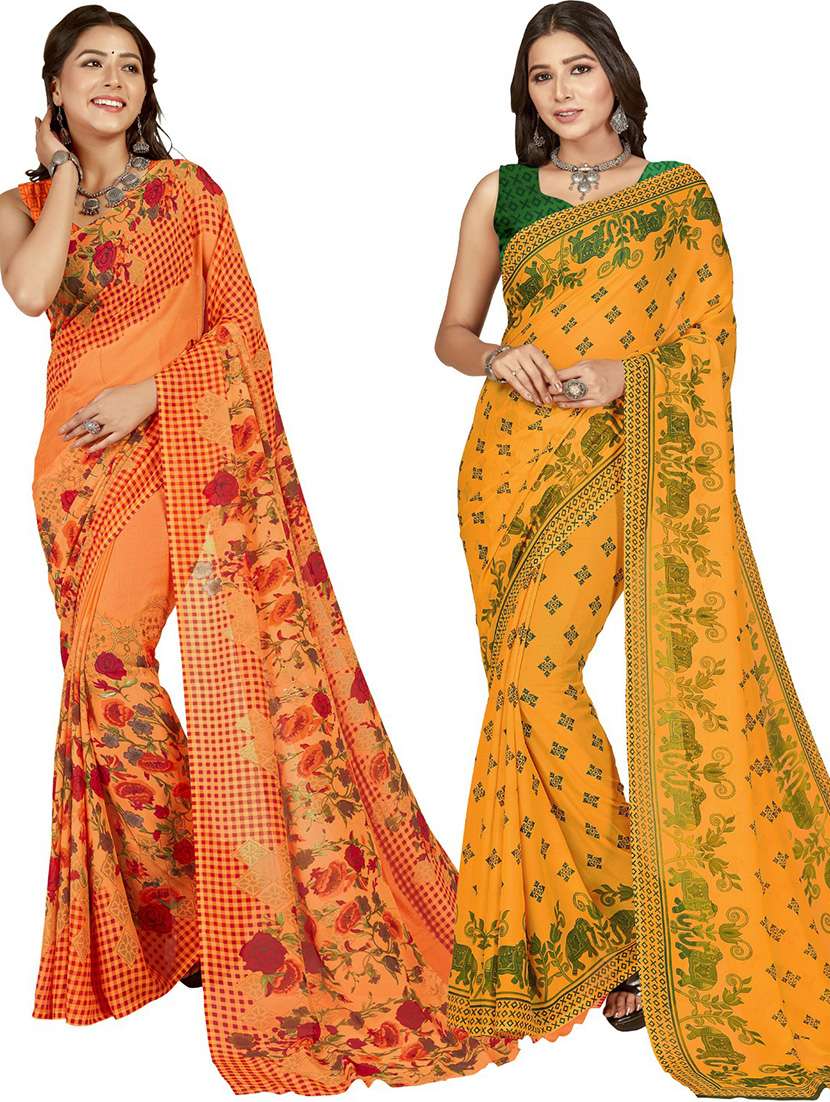women pack of 2 casual wear combo sarees with blouse - 21414780 - Very Small Image - 1