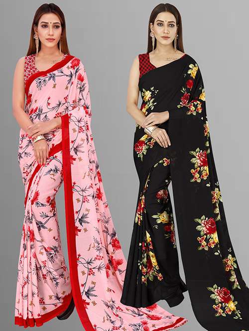 women pack of 2 casual wear combo sarees with blouse