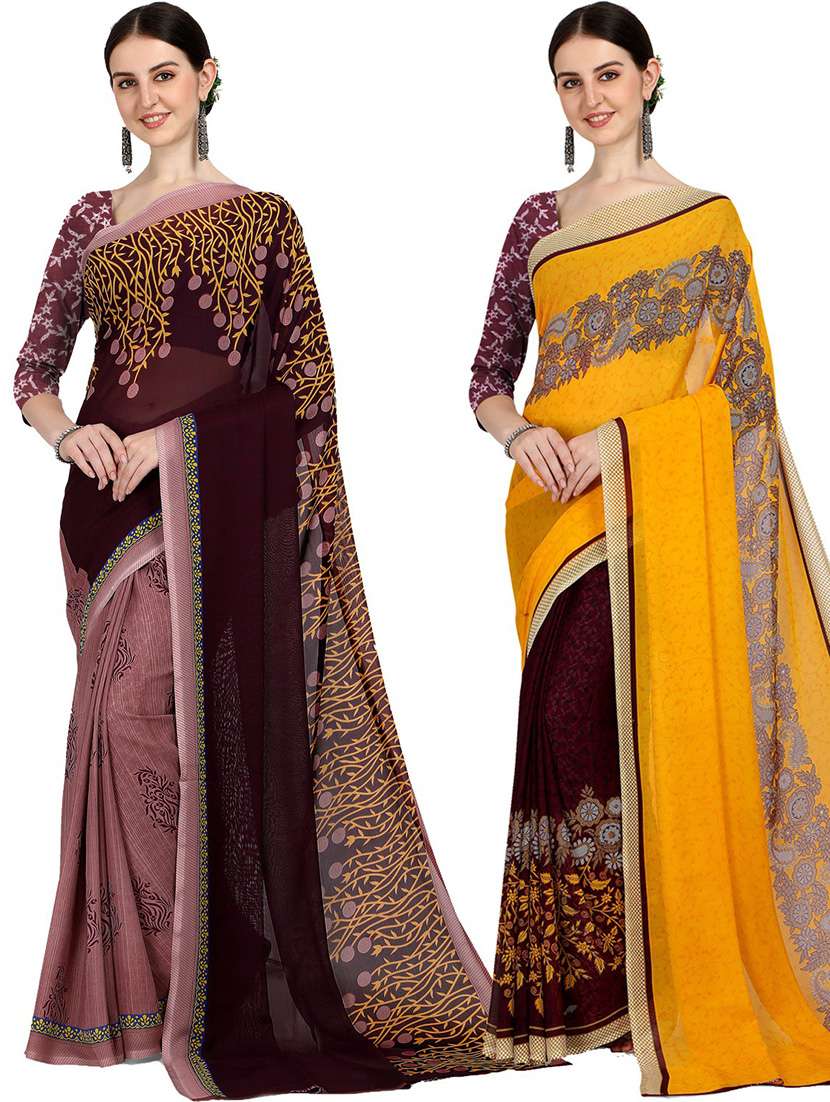 women pack of 2 casual wear combo sarees with blouse - 21414850 - Very Small Image - 1