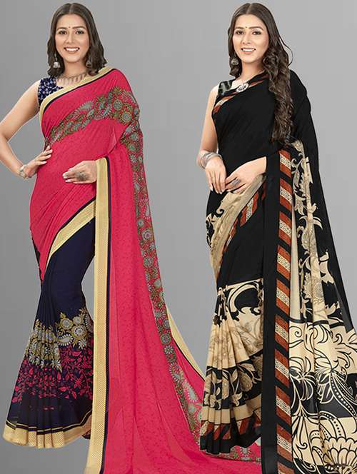 women pack of 2 casual wear combo sarees with blouse