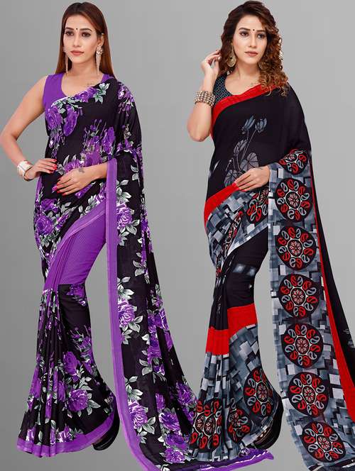 pack of 2 casual wear combo sarees with blouse - 21414953 - Very Small Image - 1