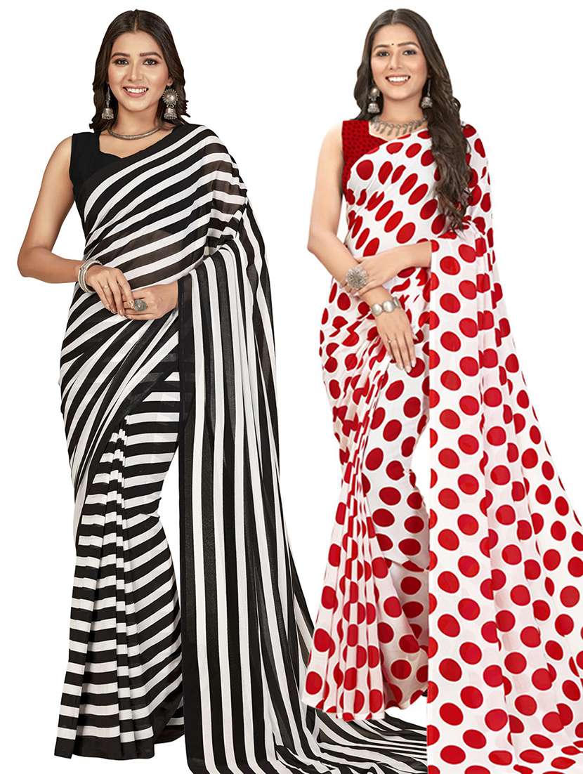 pack of 2 printed casual wear sarees with blouse - 21415010 - Very Small Image - 1