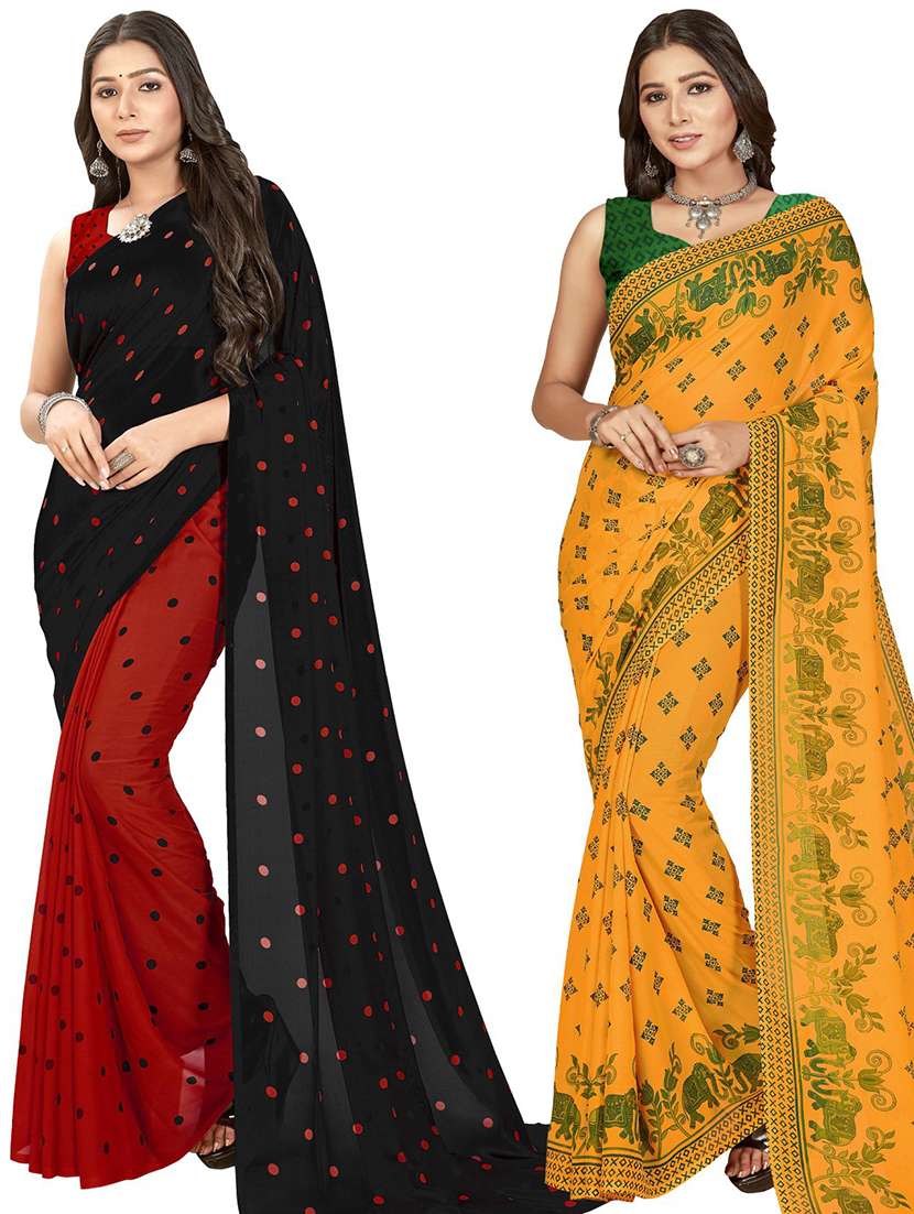 women pack of 2 casual wear sarees with blouse