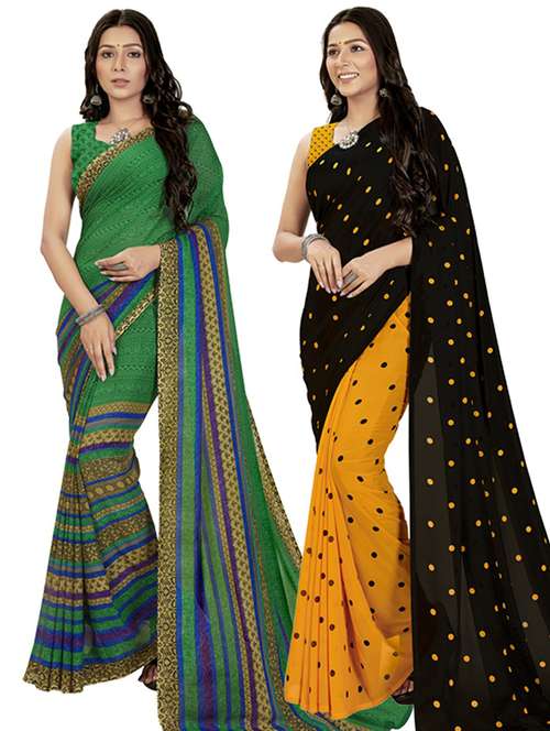pack of 2 multi colored combo saree with blouse - 21415128 - Very Small Image - 1