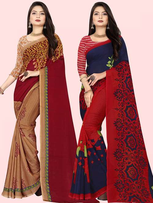 women pack of 2 casual wear sarees with blouse