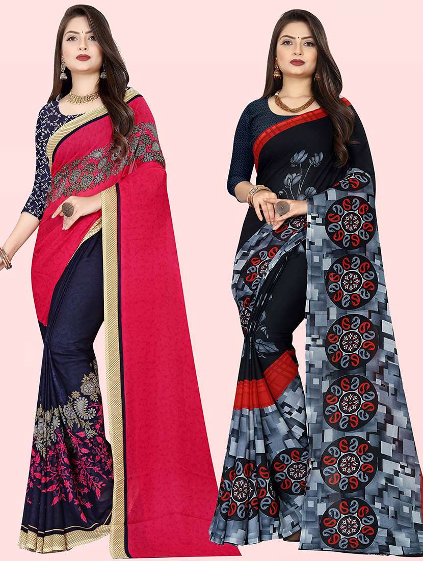 pack of 2 printed casual wear sarees with blouse