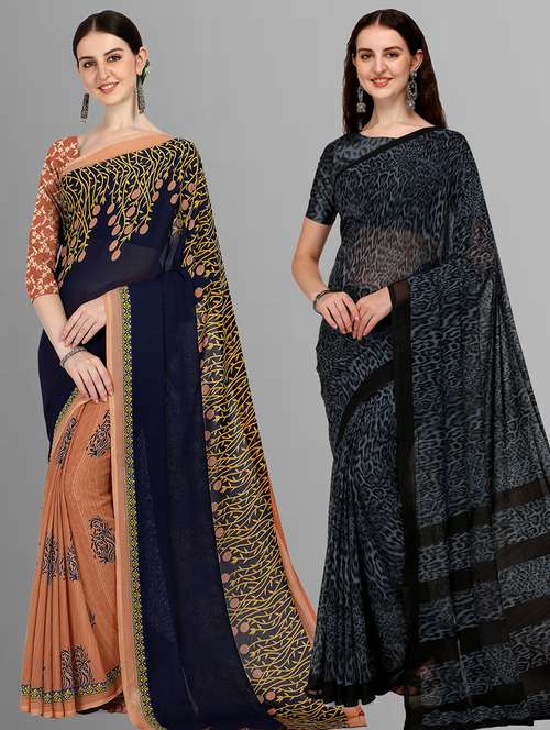 pack of 2 printed casual wear sarees with blouse - 21415336 - Very Small Image - 1