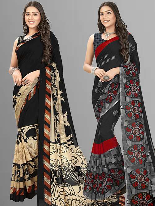 pack of 2 printed casual wear sarees with blouse - 21415359 - Very Small Image - 1