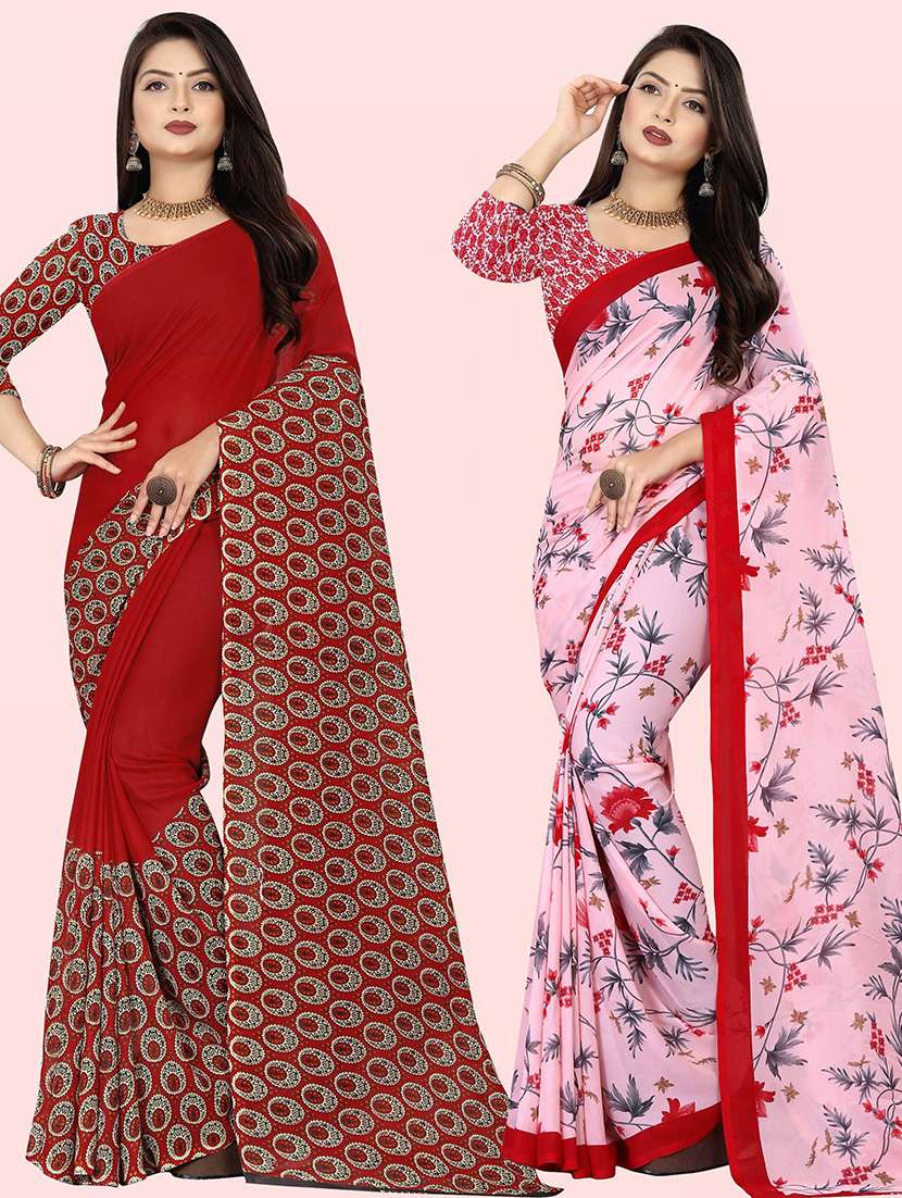 women pack of 2 casual wear sarees with blouse - 21415404 - Very Small Image - 1